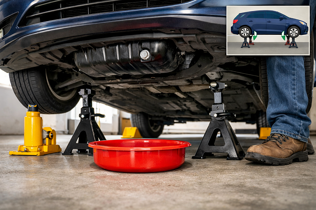 - Car ramps (easier, safer for beginners)